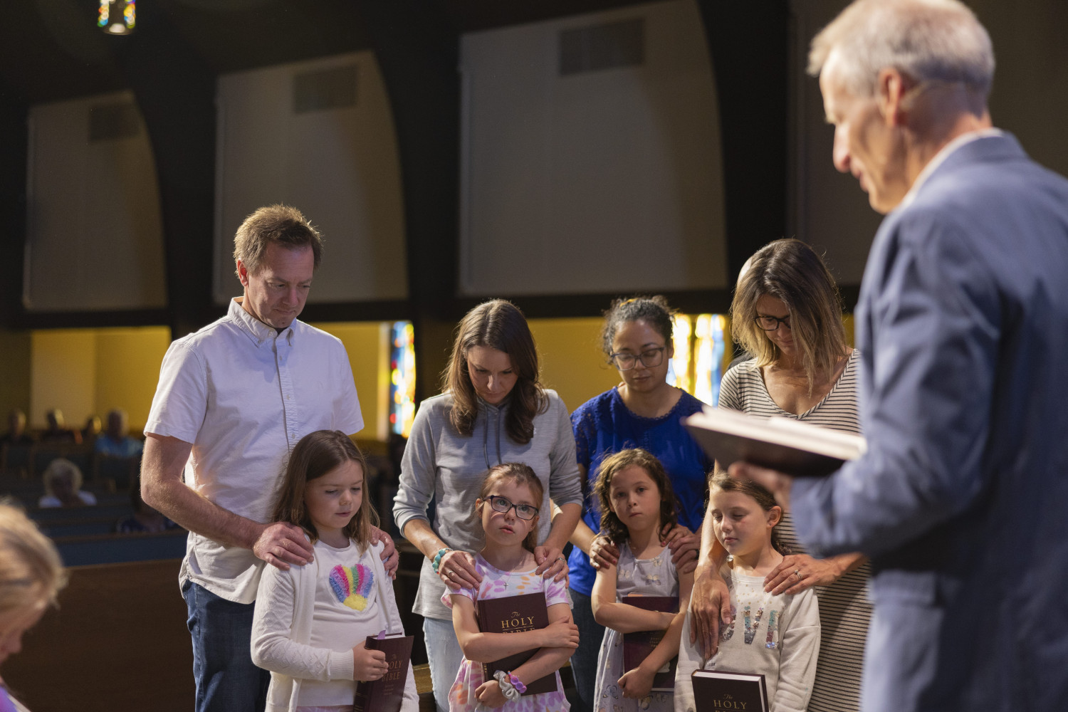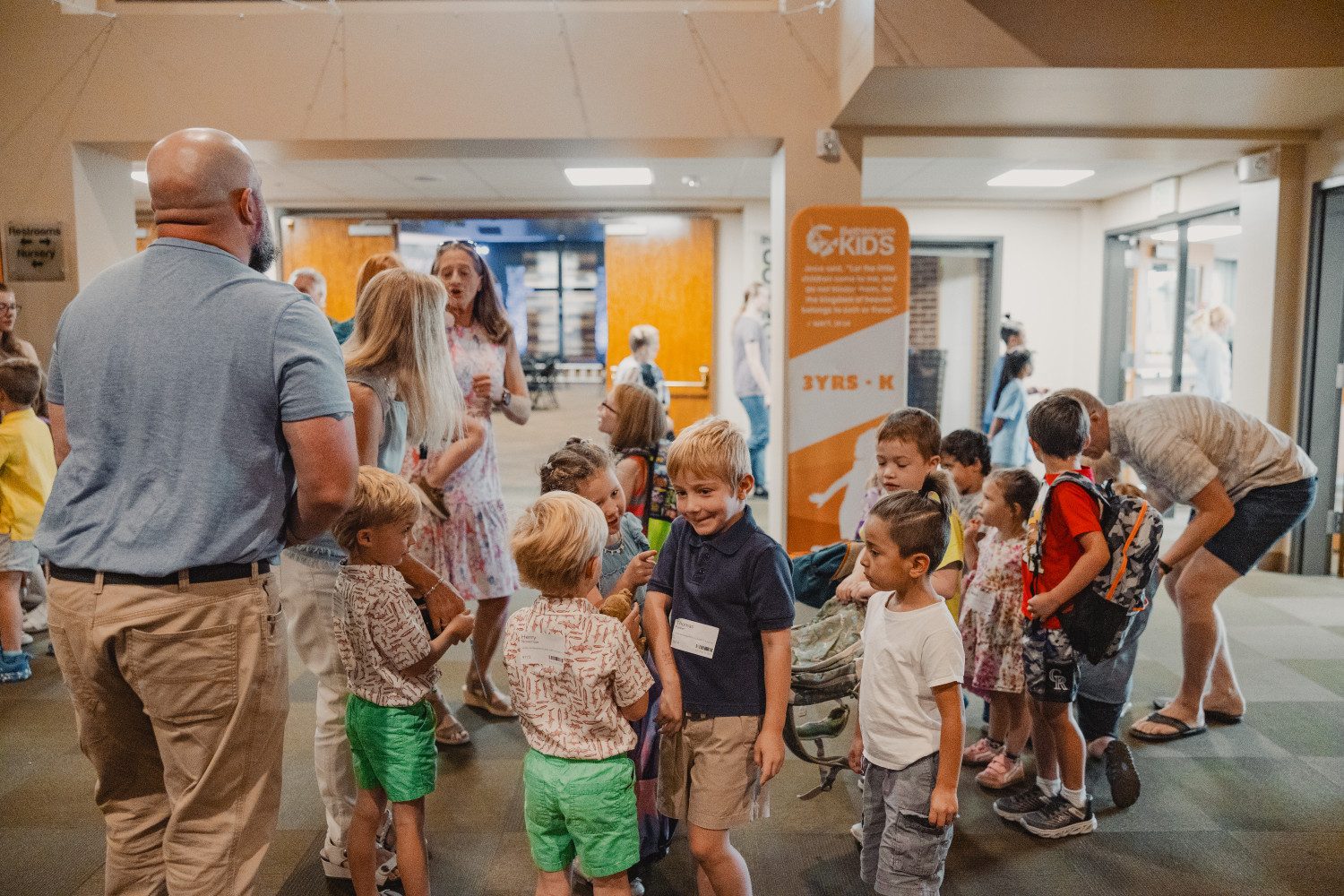 At 10:30 AM – Families begin worship in the Sanctuary and kids are excused right before the sermon to meet their group in the narthex and move to their classroom.